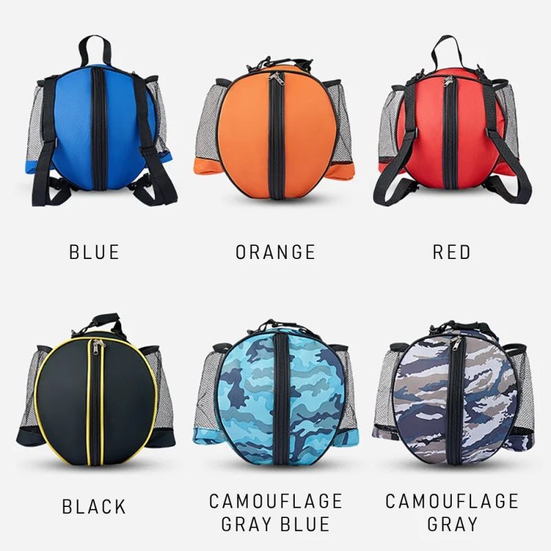 Basketball Bag Material: Oxford cloth Colors: Red, Blue, Black, Orange, Blue Camouflage, Gray Camouflage Diameter: About 25 cm, fits a size 7 basketball This round sports bag is perfect for carrying basketballs, footballs, soccer balls, and volleyballs. It has an adjustable shoulder strap with secure buckles for comfortable carrying and dual zippers to keep your items safe. Two mesh side pockets hold water bottles, towels, or small essentials. Made from waterproof and durable Oxford fabric, it protects your gear from wear and weather. Great for sports balls, clothes, or shoes—ideal for the gym, school, or beach. Includes: 1 Sports Ball Bag Note: Size and color may vary slightly due to manual measurement and lighting.