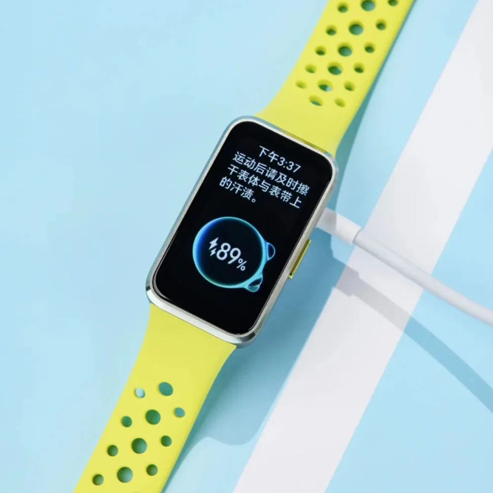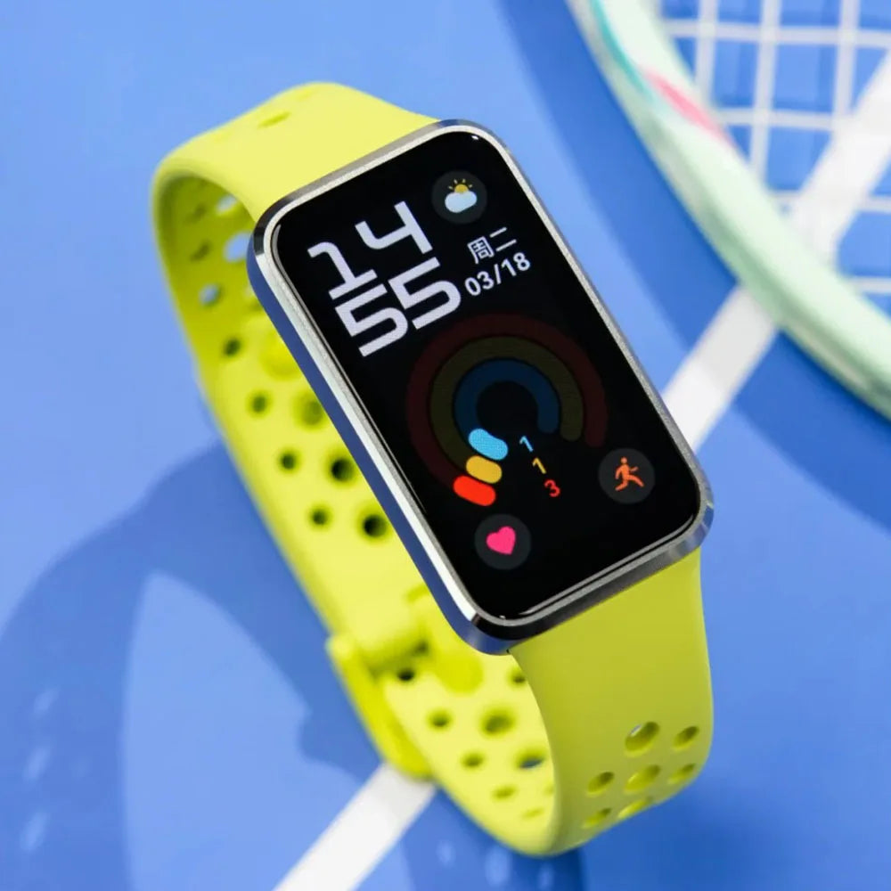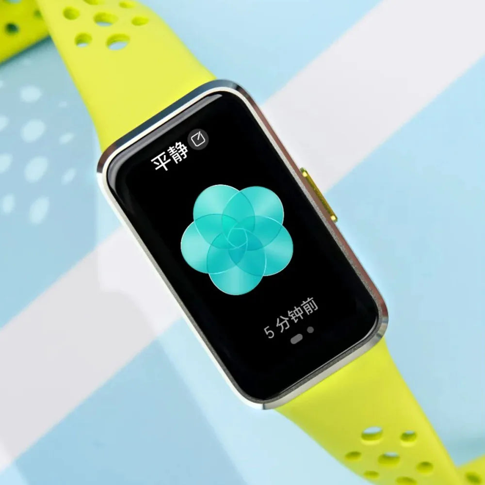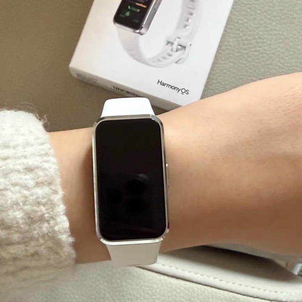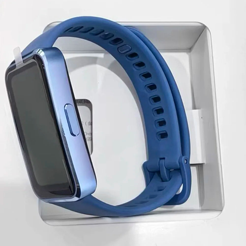 Activity Tracking: step counter, calorie counter, and overall activity monitoring. Target Audience: adults. Design and Materials: detachable rubber band with a sporty style, featuring a 1.47-inch rectangular AMOLED color touchscreen with a resolution of 194x368 pixels (PPI 282), full touchscreen functionality plus side buttons. Connectivity: Bluetooth 5.0 with BLE support at 2.4 GHz, compatible with HarmonyOS 2.0 and above, Android 9.0 and above, and iOS 13.0 and above. Features: heart rate monitoring, blood oxygen measurement, sleep tracking, and call reminders. Water Resistance: life waterproof rating suitable for everyday use. Battery and Charging: 180mAh battery capacity with magnetic charging cable. Certifications and Origin: CE certified, manufactured in Mainland China. Compatibility: supports both iOS and Android devices. Additional Notes: this is the China version and does not support NFC.
