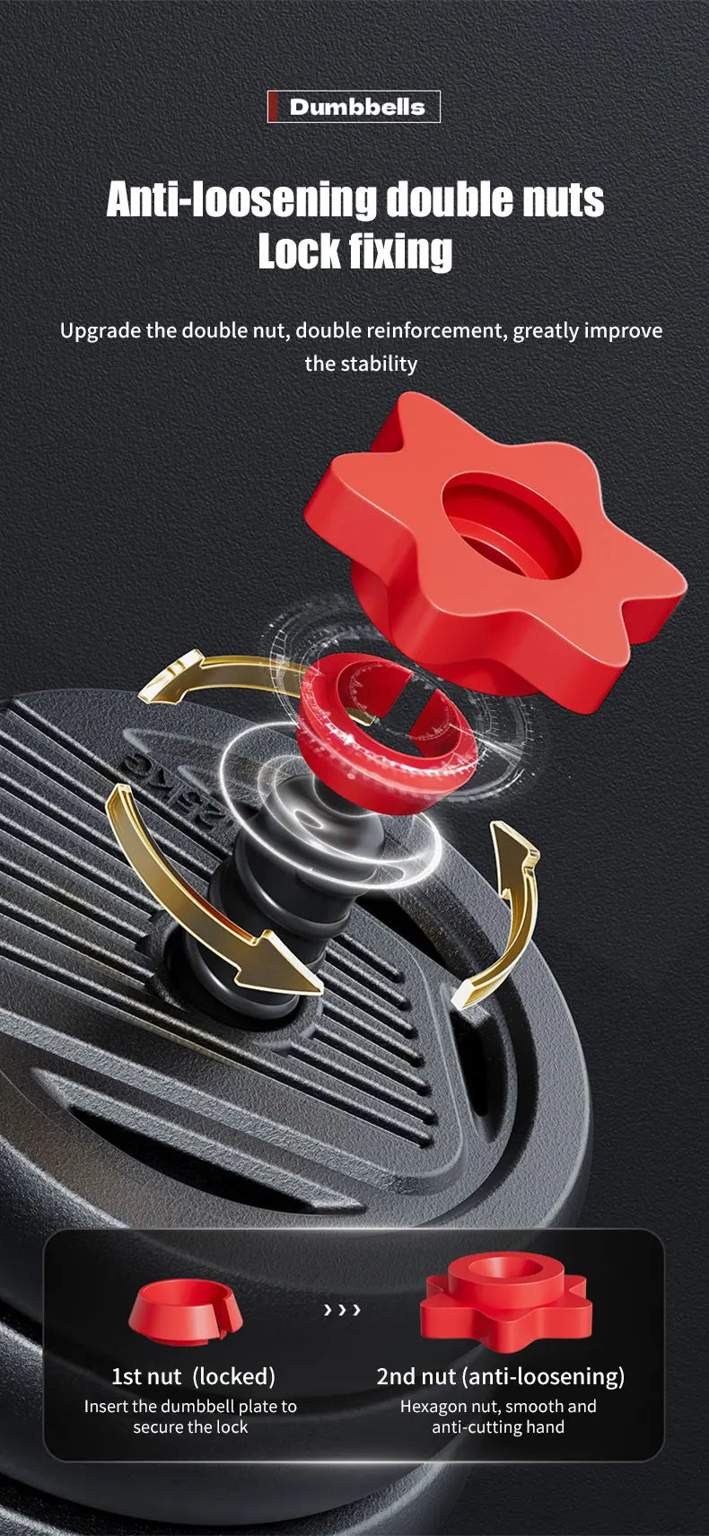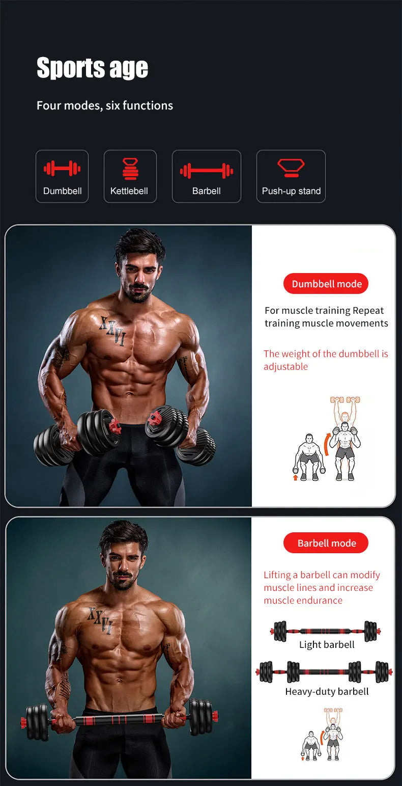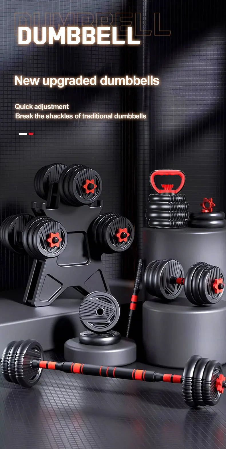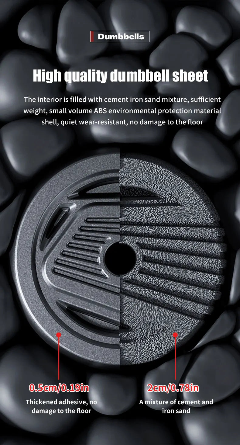The UNNMIIY 4-in-1 adjustable weight set combines dumbbells, barbells, kettlebells, and a prone push-up mode to support diverse strength training exercises like bench presses and squats. Constructed with durable materials including a cement and iron sand exterior and a core blend of iron, mud, and sand, it protects your floors from damage. The handle features 20mm thick high-quality foam with an ergonomic curve for a non-slip, sweat-absorbent grip that enhances comfort. The ABS dumbbell bars have a textured surface to improve control, while upgraded locking nuts ensure weight stability and safety during workouts. With adjustable weights ranging from 2 to 22.5 lbs and a compact design, this set adapts efficiently to varying training needs.