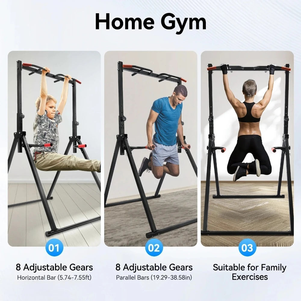 This foldable triangular pull-up bar station is engineered for effective strength training, providing a sturdy and safe workout solution. Crafted from premium carbon steel, PVC, and rubber, it features a robust triangular frame and reinforced 1.2mm-thick pipes that support up to 200 kg. The adjustable horizontal bar height ranges from 1.75 m to 2.3 m, accommodating users of various statures and enabling multiple exercises such as pull-ups, dips, and abdominal workouts. Its compact foldable design facilitates easy storage, while anti-slip grips enhance comfort and safety during use. Ideal for home gyms and fitness centers, this freestanding station promises durability and versatility.