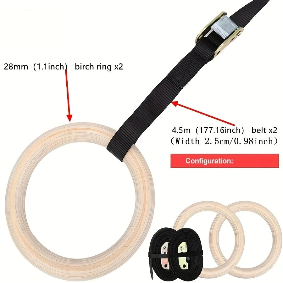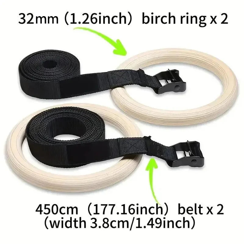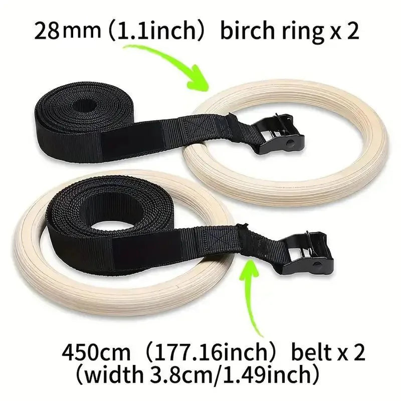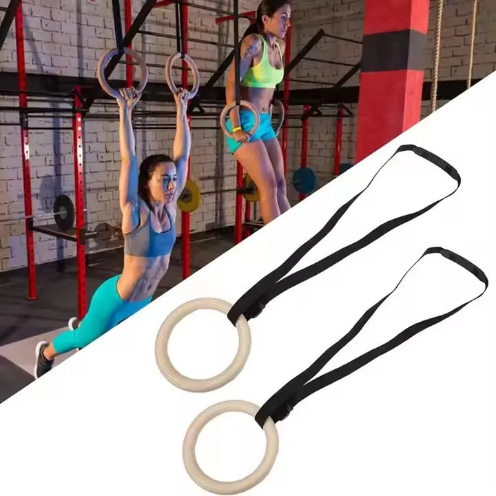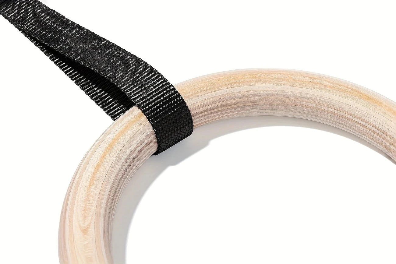 Crafted for serious strength training, these high-quality wooden gymnastic rings provide a durable and comfortable grip. Equipped with adjustable buckle straps featuring an anti-slip design, they ensure secure and customizable positioning for a wide range of exercises. Ideal for full-body workouts at home, they enhance muscle control, stability, and overall athletic performance.