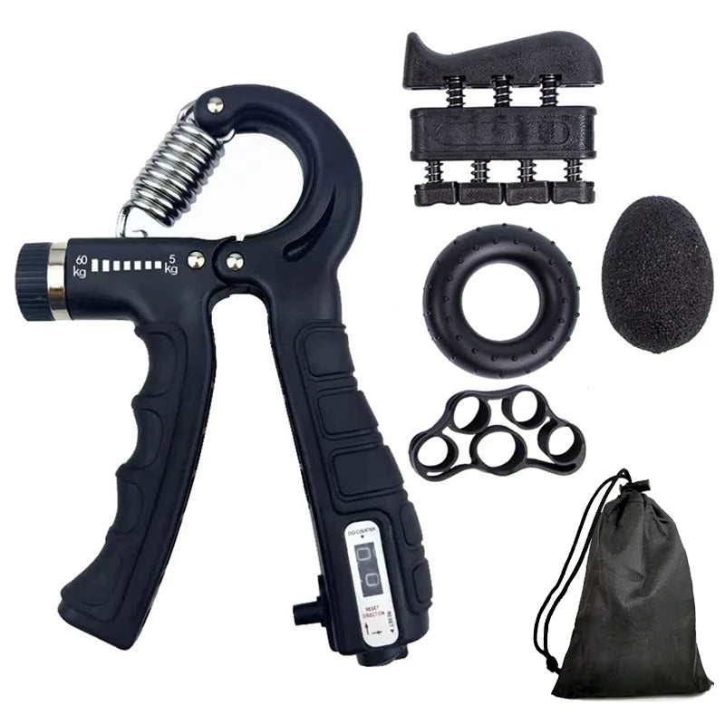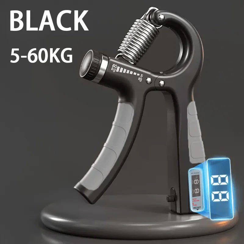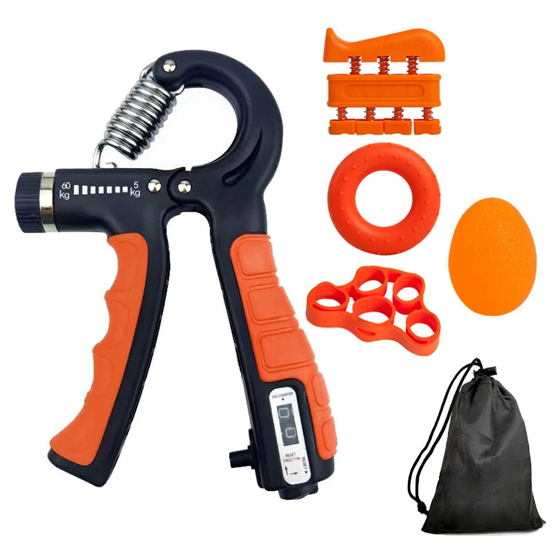 This hand grip strengthener features an adjustable dial enabling resistance to be easily set between 5 and 60 kg. It includes a built-in mechanical counter that tracks the total number of grips and can be reset for convenient daily workout monitoring to help enhance strength effectively. Designed with a non-slip handle and a high-quality stainless steel spring, it provides both comfort and durability. Its ergonomic R-shaped design fits all hand sizes, making it suitable for men, women, seniors, and teens. Precision craftsmanship ensures long-lasting performance without damage or rust.