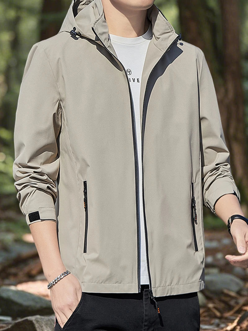 This men's softshell hiking jacket by TIKALIA combines lightweight comfort with waterproof and windproof protection, ideal for spring camping and outdoor activities. Made from 100% polyester, it features a removable hood and zippered pocket for added convenience. Please note the sizing runs smaller than usual—it's recommended to order 2-3 sizes up (for example, Asian L equals EU S or US XS). Refer to the provided height and weight guide to find your perfect fit and enjoy reliable weather protection during your adventures.