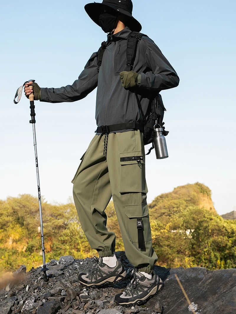 These waterproof hiking pants for men combine lightweight durability with breathable mesh lining, ensuring comfort during spring and summer adventures. Designed with practical cargo pockets and a tapered bottom, they offer both functionality and a streamlined fit, ideal for camping and outdoor activities requiring mobility and weather protection.
