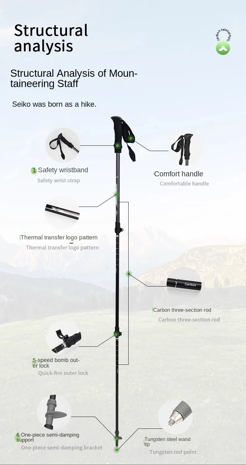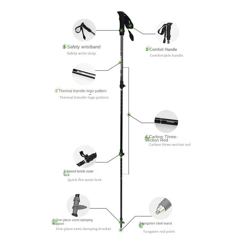 Contains No Harmful Chemicals. Features 3 Adjustable Sections. Length: 135 cm. Perfect for Mountain Climbing Adventures. Equipped with a Carbon Tungsten Steel Tip for Superior Durability and Grip