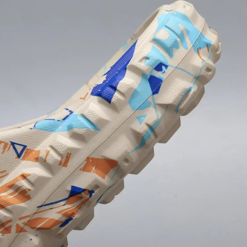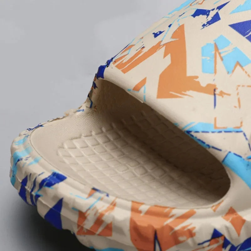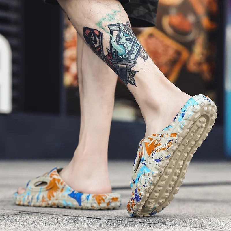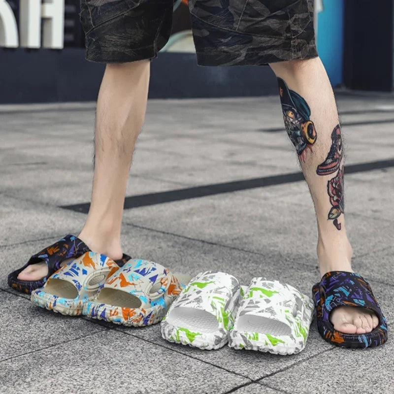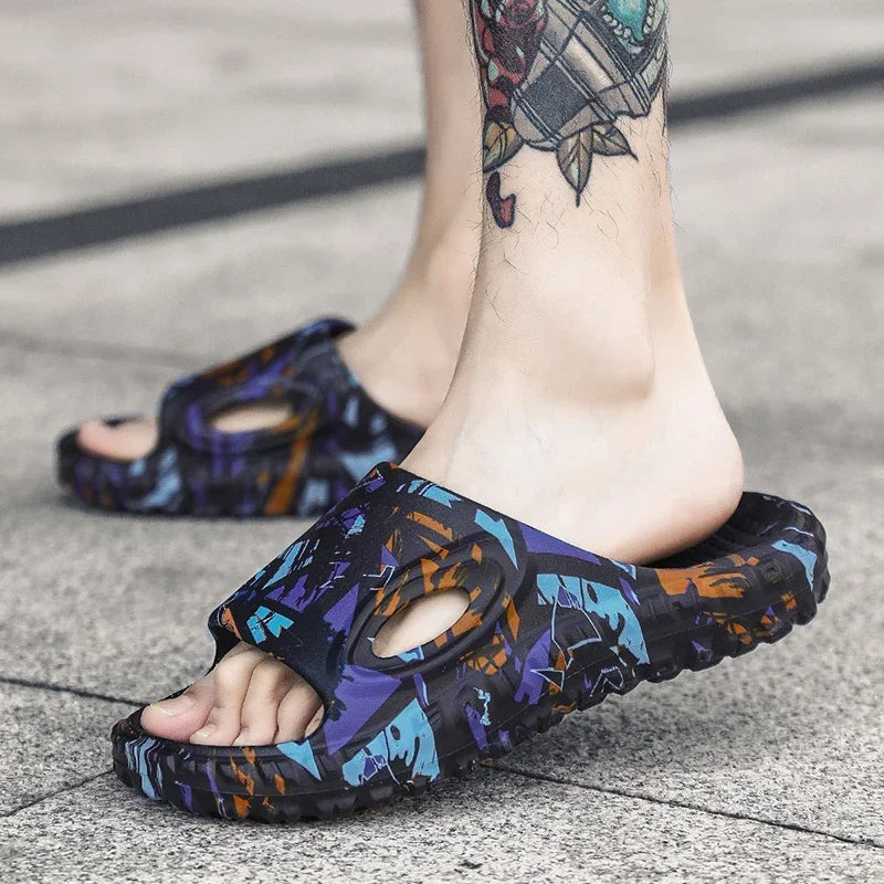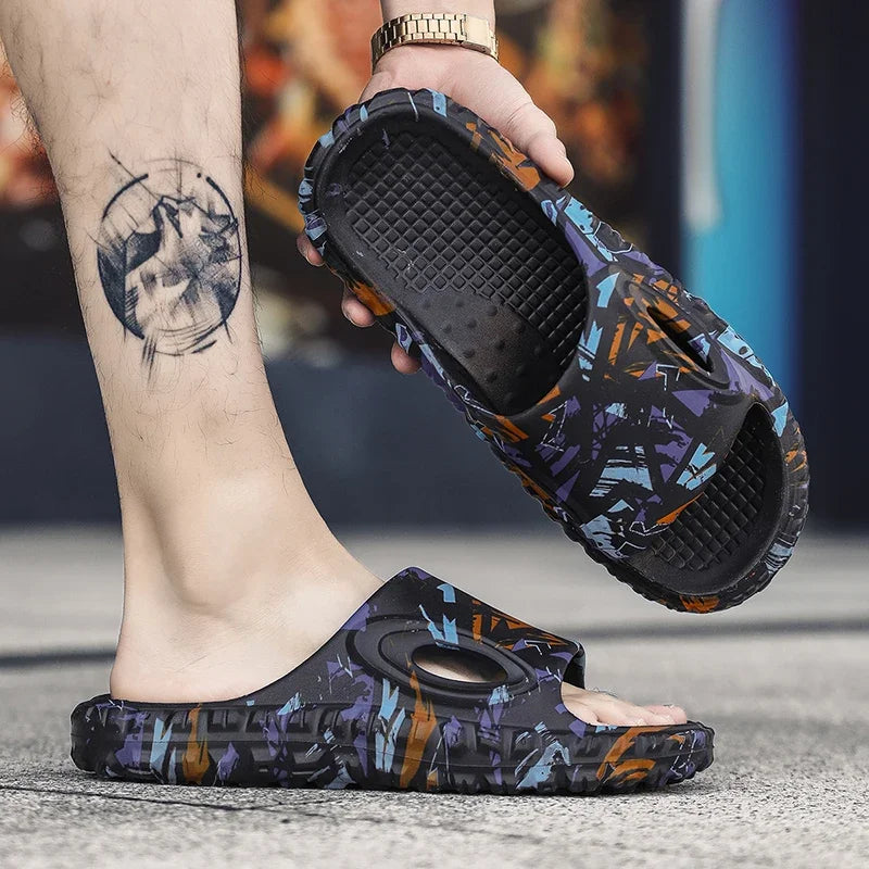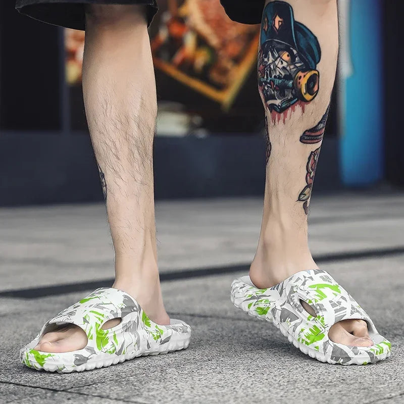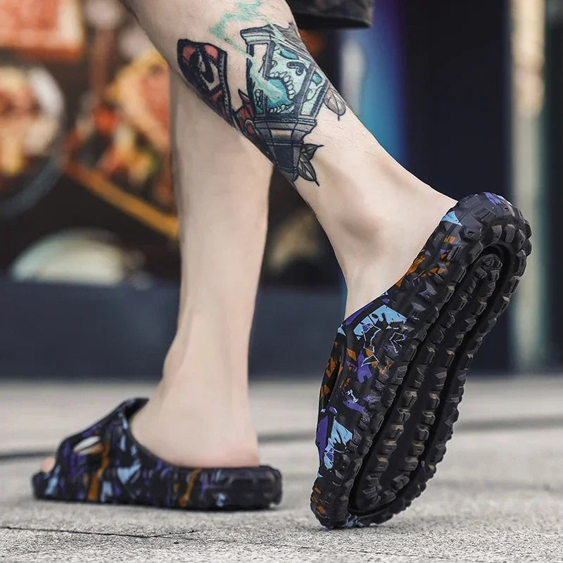 Designed for indoor use, these lightweight men's slippers feature a waterproof rubber upper and a durable, non-slip rubber sole for safety and comfort. The button closure ensures a secure fit, while the cushioned footbed provides lasting support. Available in true-to-size options, they are ideal for bathroom wear or casual summer use, combining practicality with comfort.