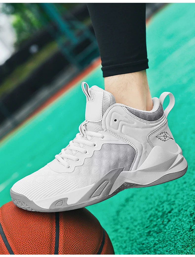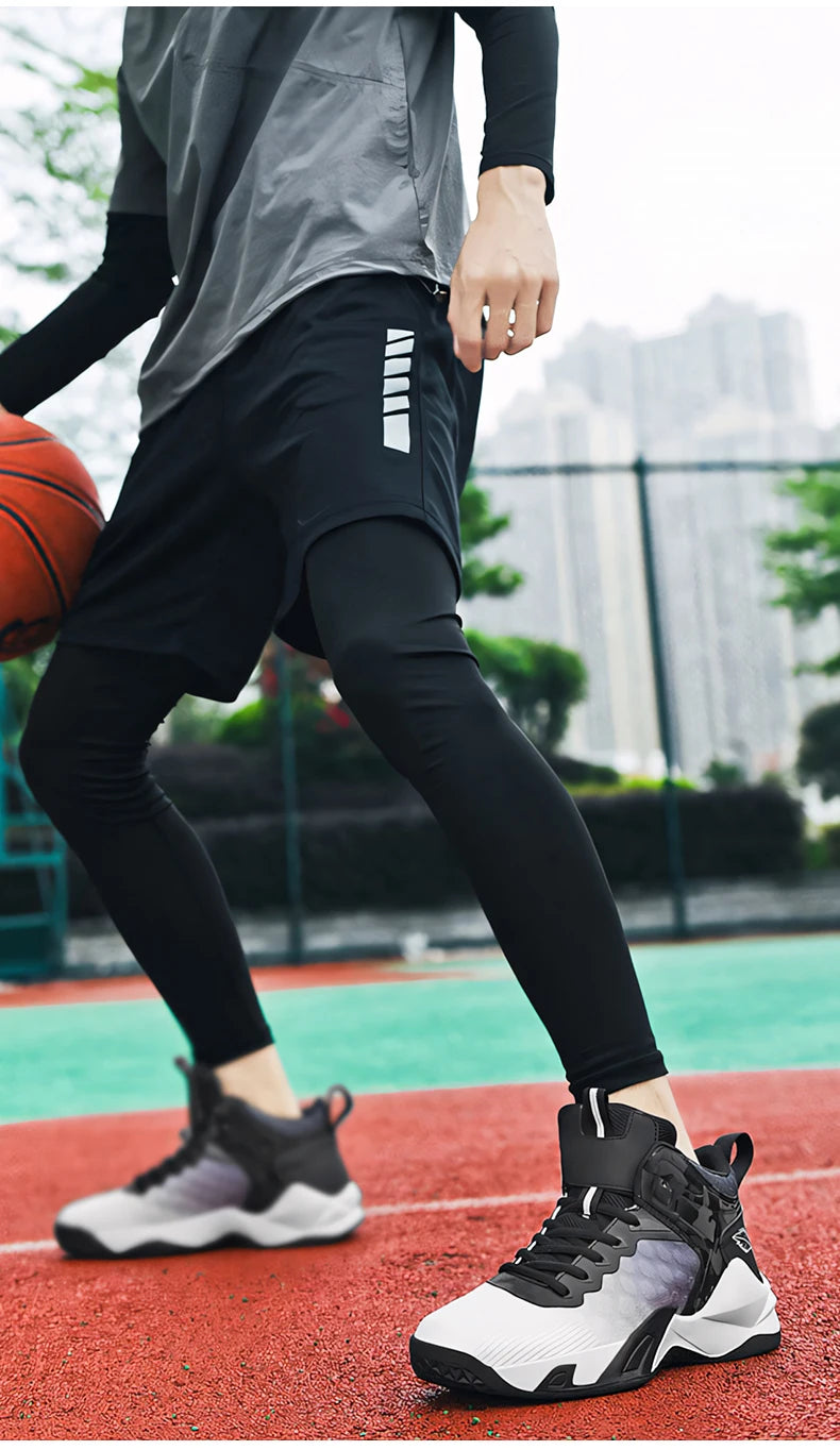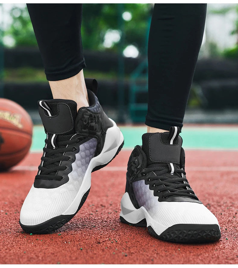 Designed for use on concrete, hard courts, and wooden floors, these men's basketball shoes by LOUIS KADHR feature Flywire technology and a rubber outsole for enhanced grip and stability. Constructed with a blend of PU and fabric, the breathable design includes a cotton lining and PU insole, offering comfort for beginner-level athletes. The medium-cut upper and lace-up closure ensure a true-to-size fit, delivering both performance and style for effective speed training in basketball.