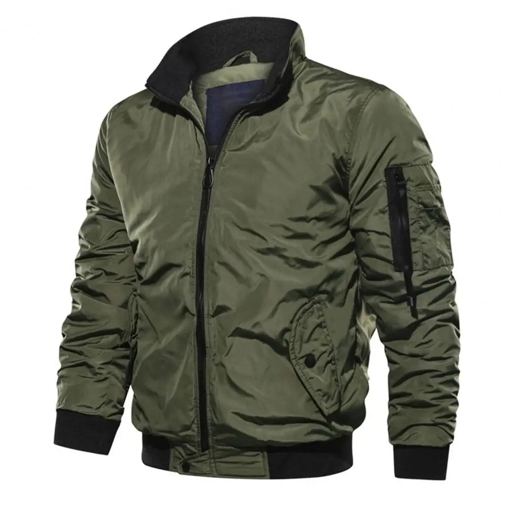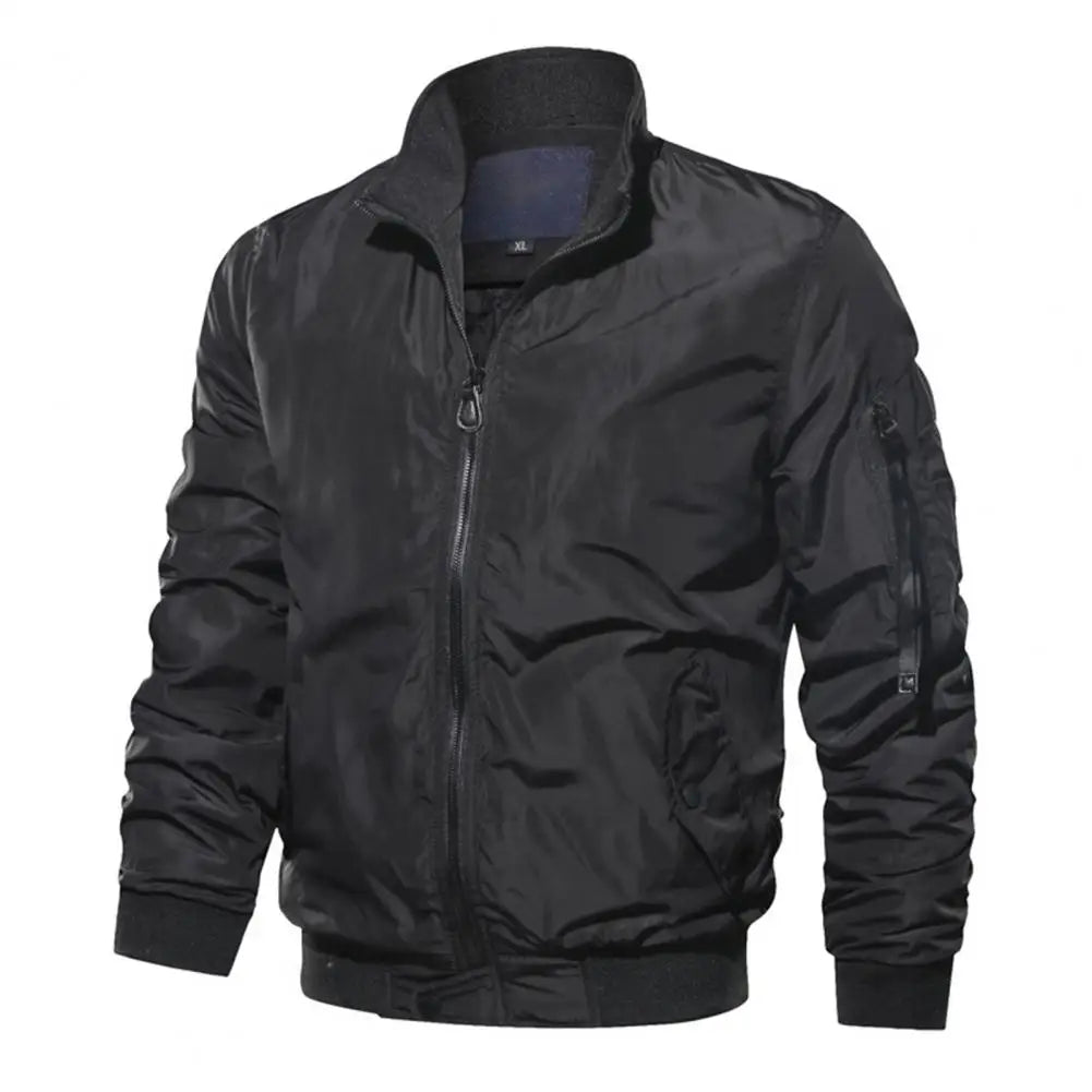 This men's windbreaker offers reliable warmth and protection for autumn and winter with its thickened, waterproof design. Made from soft polyester, it feels comfortable against the skin while shielding you from the cold. Featuring a stand collar that keeps your neck cozy and a zipper closure for easy wear, it blends practicality with a clean, solid color look. Side pockets provide convenient storage and a place to keep your hands warm. Available in a wide range of sizes from L to 5XL, this casual jacket is perfect for daily use, work, or outdoor activities. Stay comfortable and stylish in colder weather.