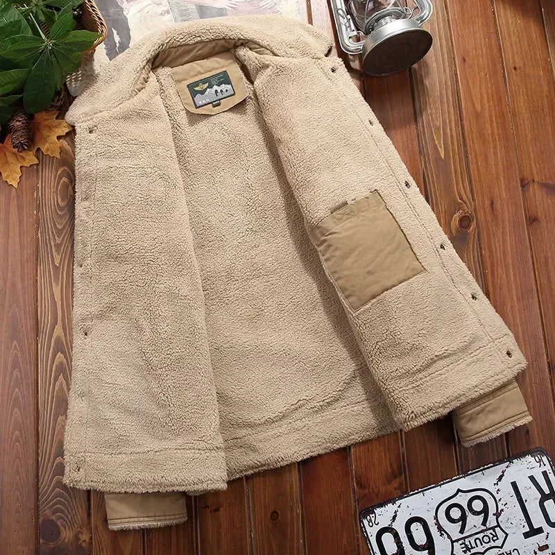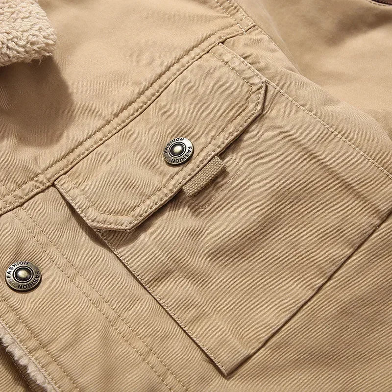 This fleece bomber jacket is designed for everyday use during autumn and winter, featuring a slim fit and regular length with a classic turn-down collar. Crafted from a cotton and polyester blend with a cotton lining, it provides comfort and warmth. The jacket includes a zipper closure and conventional cuffs, showcasing a solid pattern without decorative details. Perfect for men seeking a casual and functional outerwear piece that combines style and durability.