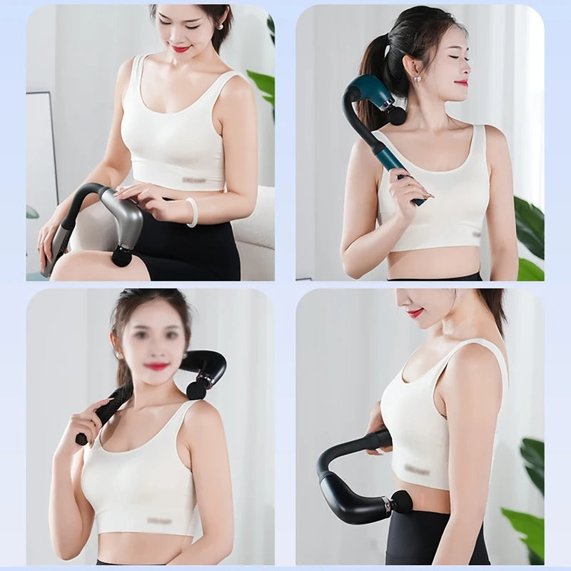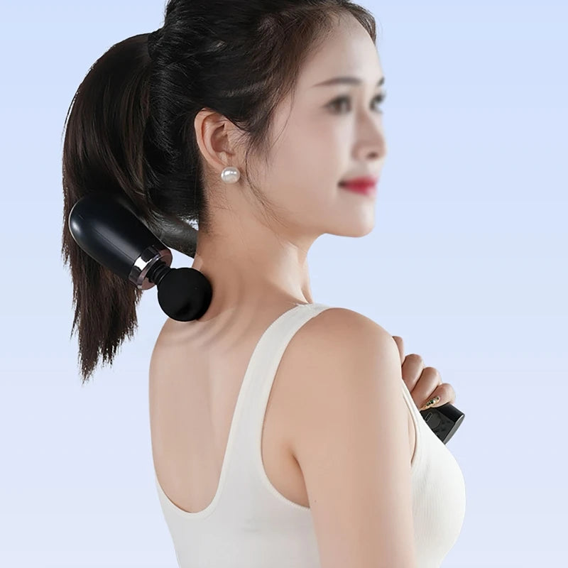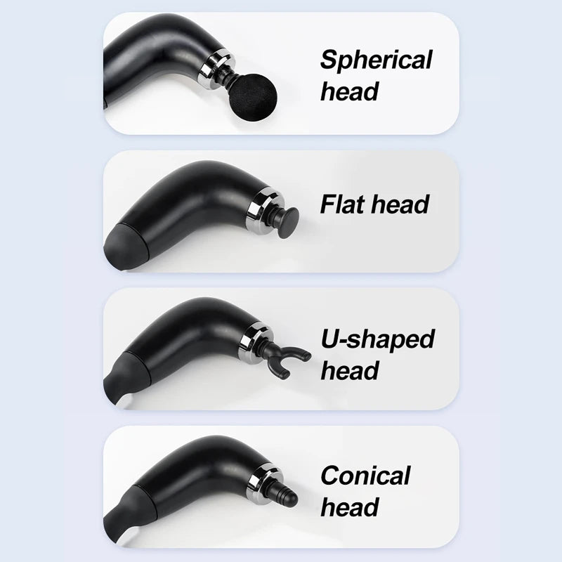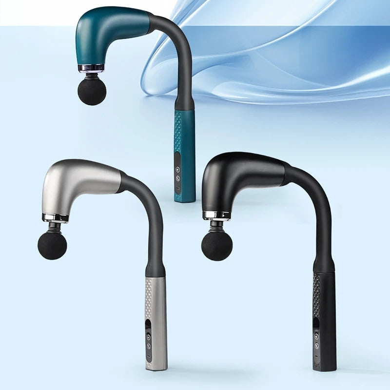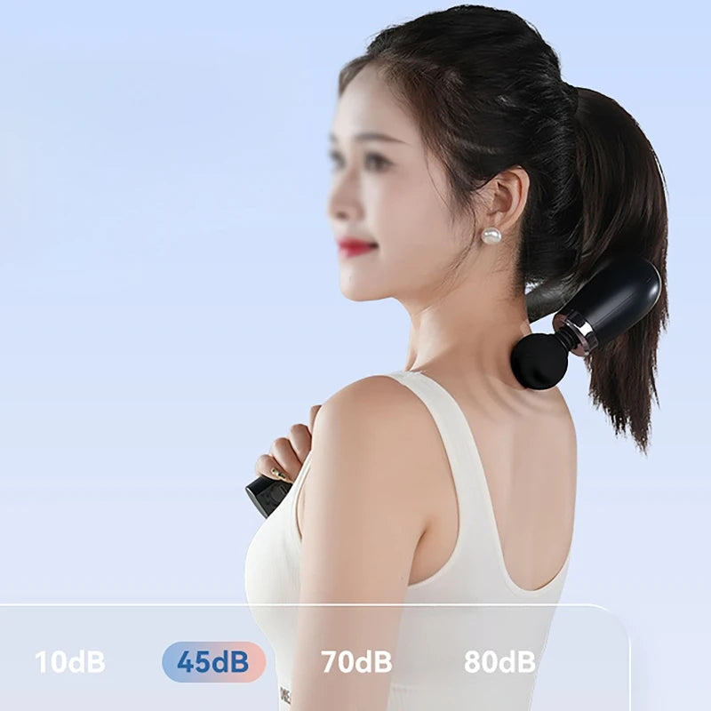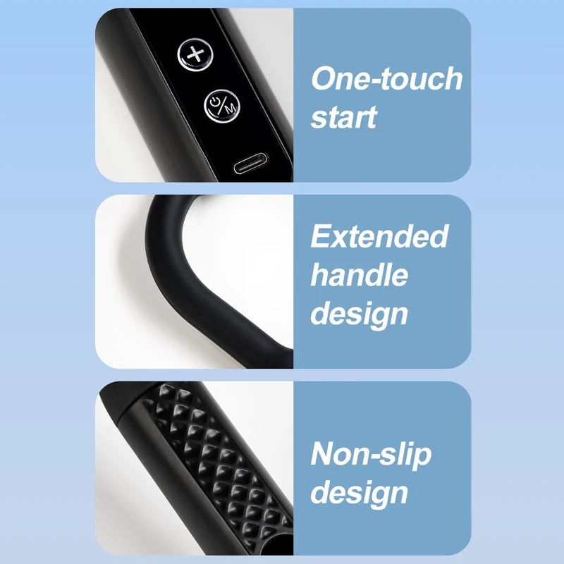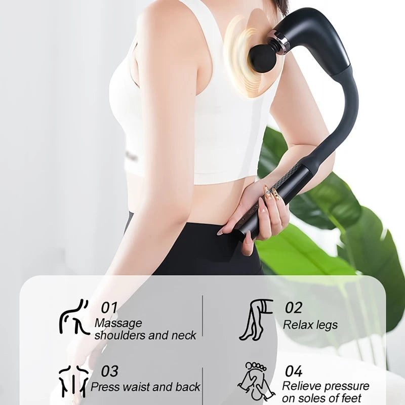 This smart massage gun features a high-precision motor with intelligent control, offering 9 adjustable modes and intensity levels for tailored muscle relief. Its extended handle design enables full-body reach without strain, overcoming the limits of arm length. Equipped with four specialized massage heads, it targets different muscle groups while avoiding bone contact for effective hammering and kneading. Operating quietly at just 45 decibels, it provides a peaceful massage experience. Powered by a 1500mAh lithium battery, it charges via USB in 2-3 hours and delivers up to 40 minutes of use per charge. Constructed from durable ABS and silicone materials, this device is ideal for comprehensive muscle relaxation.
