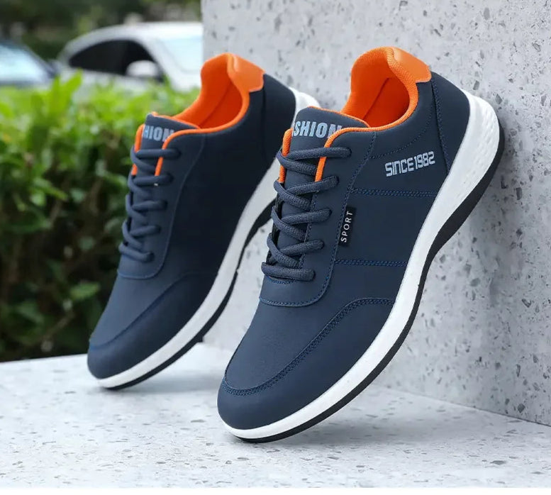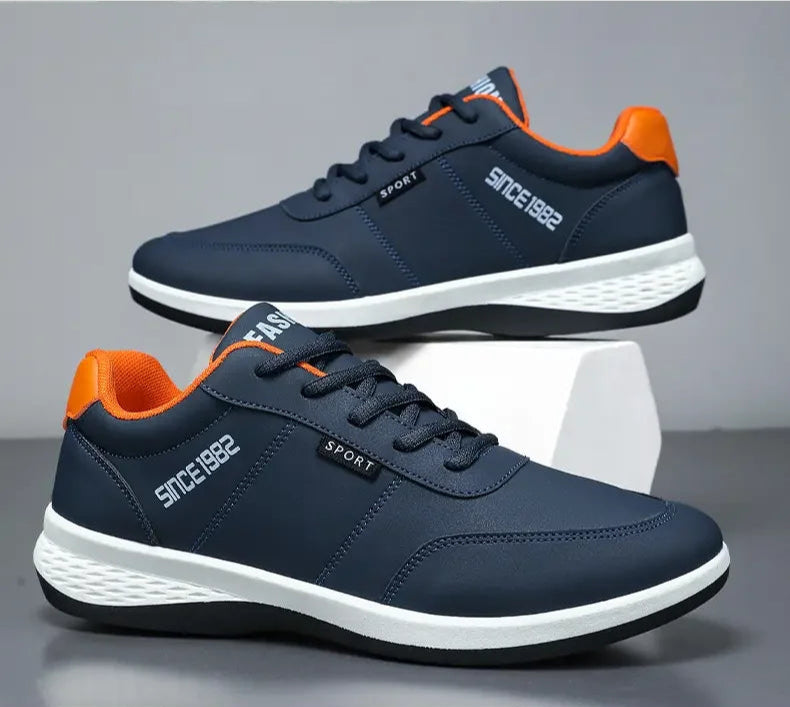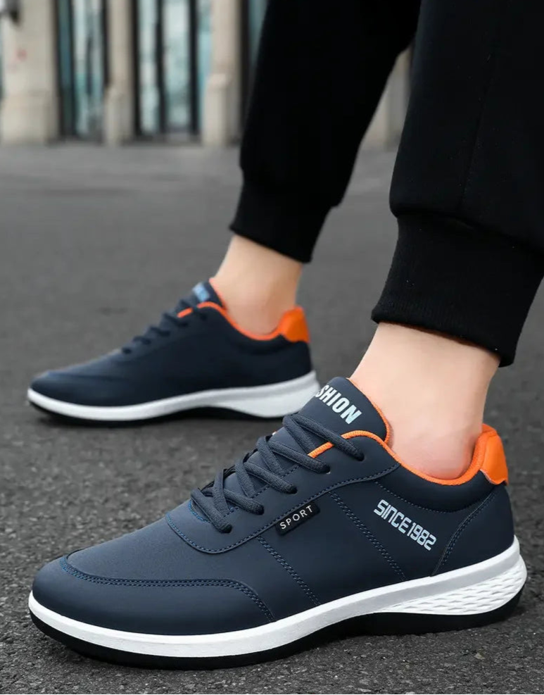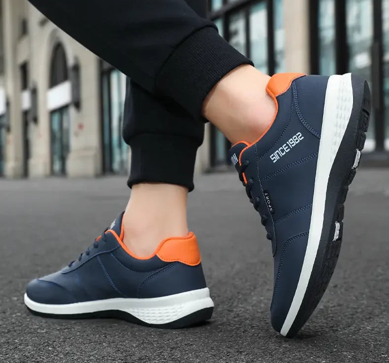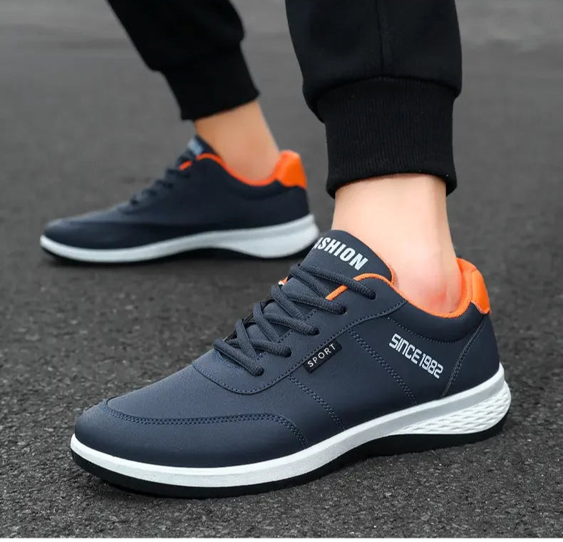 These men's sneakers feature a breathable mesh lining and durable artificial leather upper for long-lasting wear and comfort. The lace-up design ensures a secure fit true to size, supported by an EVA insole and a rubber outsole that provides shock absorption and traction. With a flat bottom and soft sole, they are ideal for summer training and outdoor running, offering breathability and lightweight support without metal toe caps or waterproofing. Perfect for casual and athletic use, these shoes combine performance and comfort for active lifestyles.