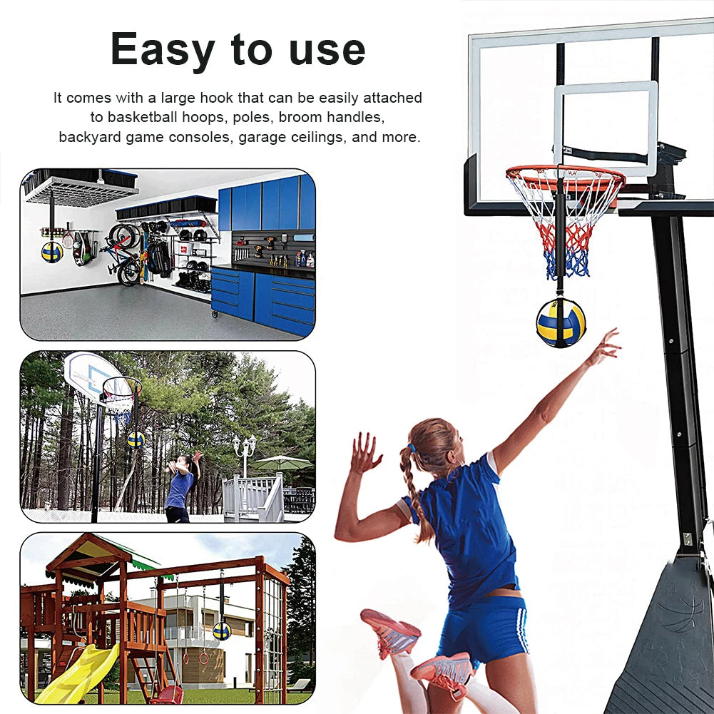 The Volleyball Spike Trainer by Shunmaii is a professional-grade training aid designed for both youth and adult players. It features a convenient hook for quick attachment to various structures such as basketball hoops, poles, playsets, or ceilings, enabling versatile training setups. The thick sponge padding protects surfaces from scratches while ensuring secure placement. Adjustable Hook and Loop Fastener straps provide a tight grip on the ball, improving stability and control for precise practice. Constructed from durable nylon webbing with adjustable height and length, this trainer accommodates different skill levels and training environments. Its heavy-duty design supports intense and repetitive volleyball training sessions.