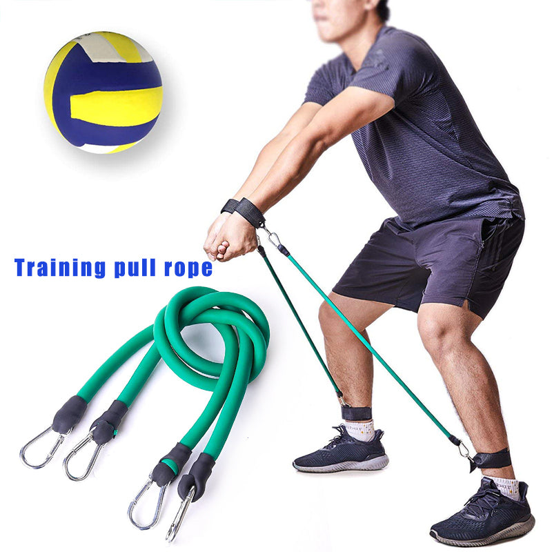 This Volleyball Training Aid Resistance Band Belt Trainer is designed to improve technique by preventing excessive upward arm movement during passing. Made with fabric cover, latex tube, and elastic rubber, it features adjustable elastic bands to fit any height. The durable, corrosion-resistant materials include low-profile hook-and-loop wrist cuffs that minimize interference with ball contact. This lightweight, easy-to-use trainer effectively reinforces proper passing mechanics. Package includes adjustable buckle, elastic ropes, ankle straps, and storage bag for convenience.